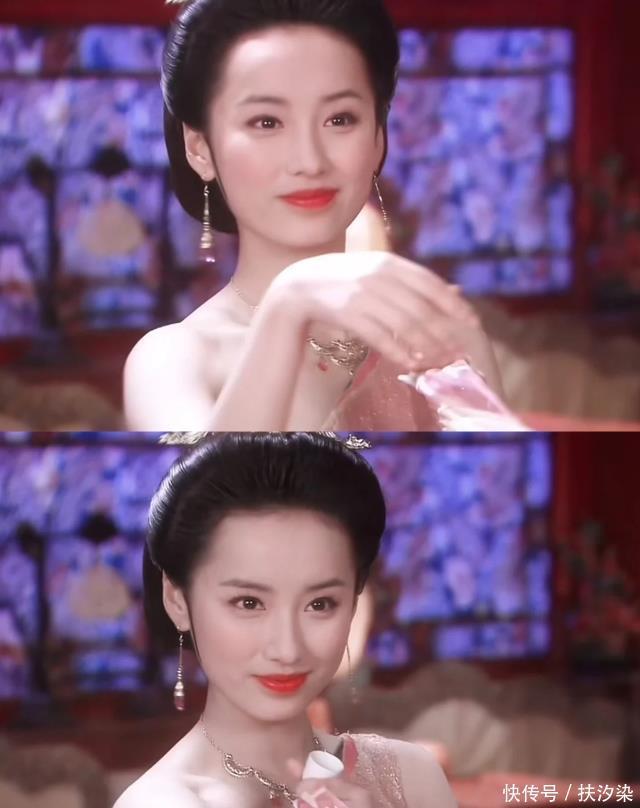 眼睛大大的还带着点下垂感,轻轻皱下眉头 就像受了委屈的小兔子,让人忍不住想心疼 她早年演《天外飞仙》《雪在烧》的时候 就凭着这张无害的脸圈了不少粉